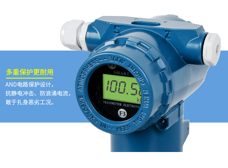 產(chǎn)品描述:SIN-3051系列壓力變送器利用差動電容檢測的原理,當膜片兩側(cè)壓力不一致時,使容室中測量膜片產(chǎn)生位移,其位移量與壓力差成正比,通過電路處理將電容變化量轉(zhuǎn)換成4~20mA的二線制電流或電壓信號,可帶上458協(xié)議或者HART通訊協(xié)議功能。該變送器具有堅固抗振,量程,零點和阻尼現(xiàn)場連續(xù)可調(diào)。