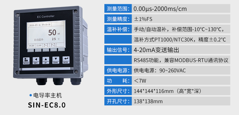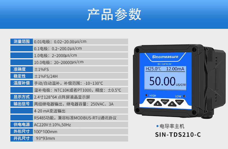 產(chǎn)品描述:SIN-TDS210-C工業(yè)電導(dǎo)率儀表,廣泛應(yīng)用于火電、化工化肥、冶金、環(huán)保、制藥、生 化、食品和自來水等行業(yè)??刂破髦饕獙?duì)溶液中的電導(dǎo)率/總?cè)芙夤腆w/ 電阻率和溫度進(jìn)行連續(xù)監(jiān)測(cè)。