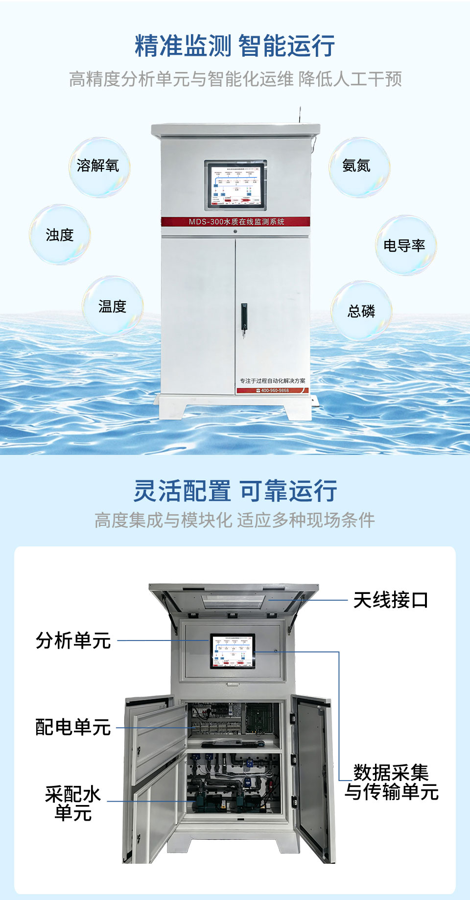 產(chǎn)品描述:MDS-300 是一款高度集成的綜合水質(zhì)在線監(jiān)測站,適用于河流湖泊、污水處理、供水工程等場景。可監(jiān)測多種水質(zhì)參數(shù)(支持定制),并提供從安裝到運維的全套解決方案。產(chǎn)品已服務(wù)超過800,000合作伙伴,遠(yuǎn)銷130多個地區(qū)和國家。