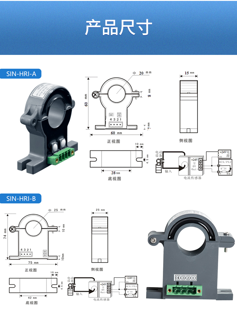 產(chǎn)品描述:電流變送器可以直接將被測(cè)主回路交流電流或者直流電流轉(zhuǎn)換成按線性比例輸出的DC(4~20)mA(通過(guò)250Ω 電阻轉(zhuǎn)換DC( 1~5)V或通過(guò)500Ω電阻 轉(zhuǎn)換DC(2~10)V)恒流環(huán)標(biāo)準(zhǔn)信號(hào),連續(xù)輸送到接收裝置(計(jì)算機(jī)或顯示儀表)。