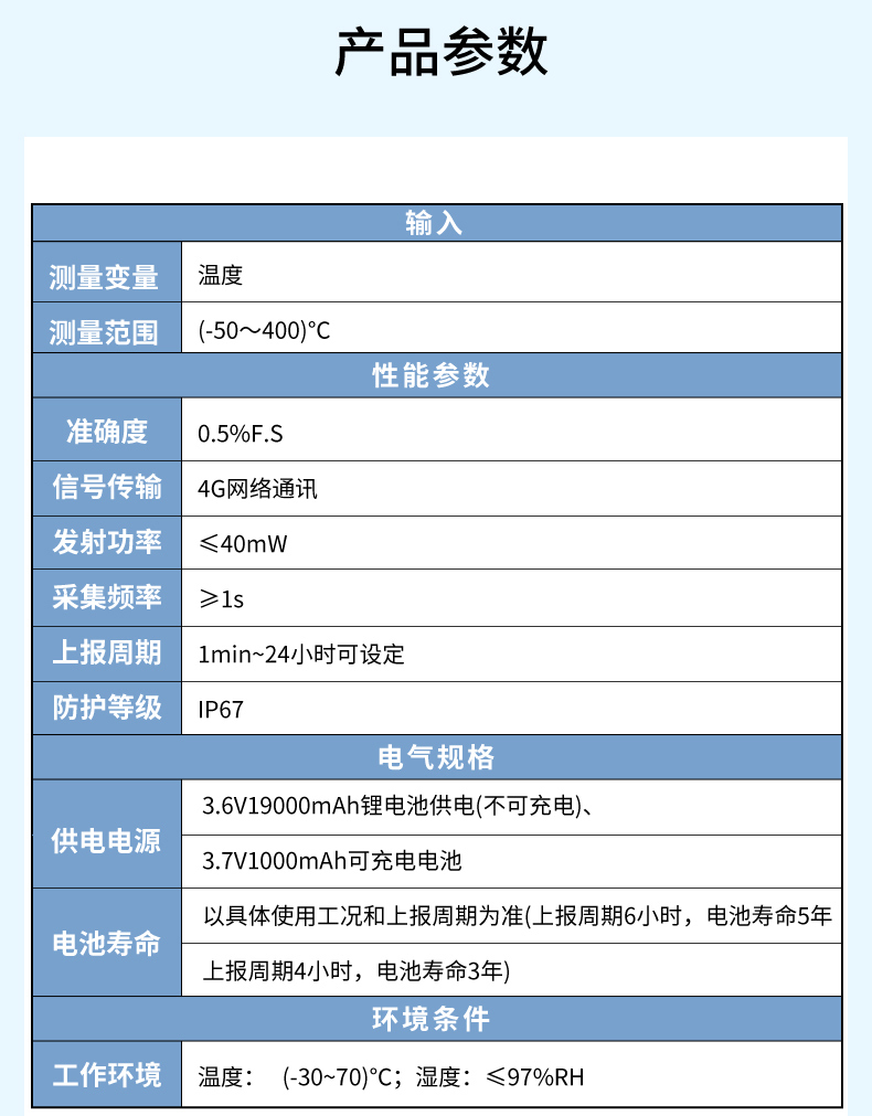 產(chǎn)品名稱:4G通訊 電池供電 低功耗 0.5%精度