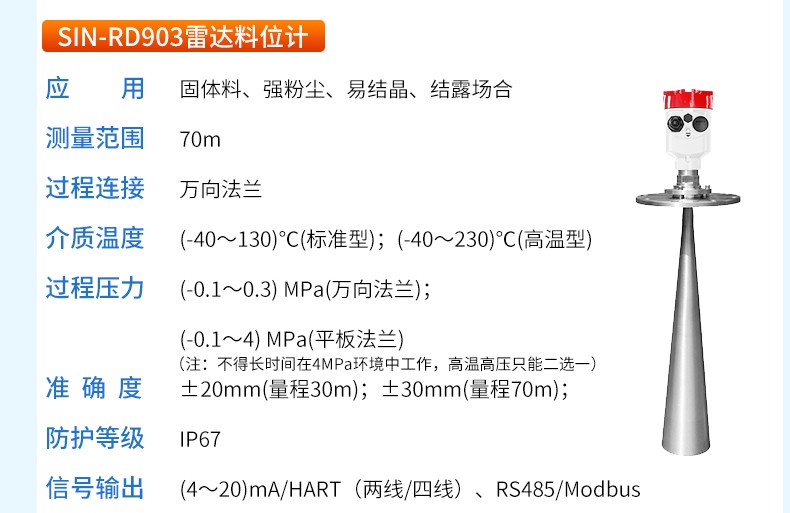 產(chǎn)品名稱:SIN-RD905雷達(dá)料位計(jì)_適用于固體顆粒、粉料