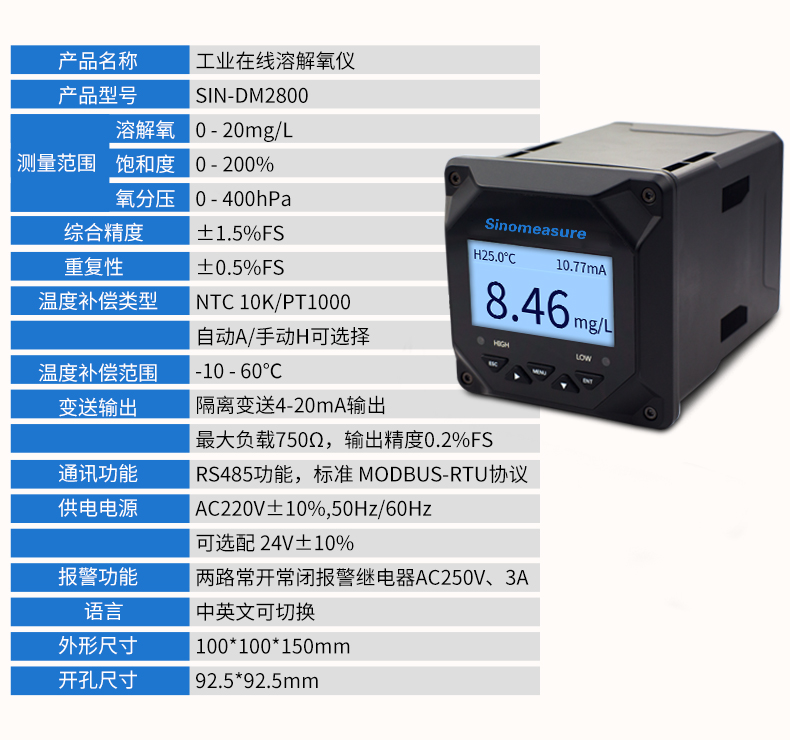 產品描述:儀器用于工業(yè)上溶氧%/ppm/mgL/ugL/ppb 及溫度的測量,如:發(fā)酵,飲用水,鍋爐水,海水,養(yǎng)殖,水族館,地表水,工業(yè)污水,都市廢水,環(huán)境監(jiān)測,食品生產過程等,儀器可以盤面安裝,壁掛安裝,管路安裝,儀器提供 2 路電流輸出,最大負載為 500Ω,儀器提供 3 路控制用繼電器,繼電器最大承受電壓及電流為 5A/250VAC 或 5A/30VDC。CN2