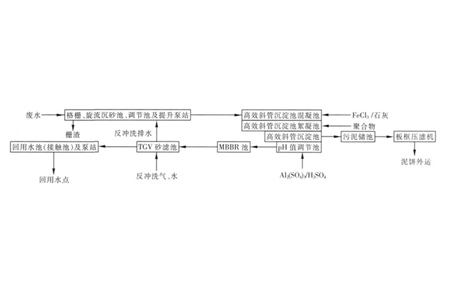 冶金廠廢水主要由各循環(huán)系統(tǒng)的排污水、及雨水組成,具有以下特點: 各循環(huán)系統(tǒng)定時排污,水量、水質(zhì)變化大; 所含污染物以無機(jī)物為主,但含少量有機(jī)污染物,可生化性差; 總硬度、 總堿度較高; 含有少量浮油。為實現(xiàn)節(jié)能減排,現(xiàn)多 數(shù)冶金企業(yè)將綜合廢水收集在一起,處理后作為生產(chǎn)補(bǔ)水全部回用。