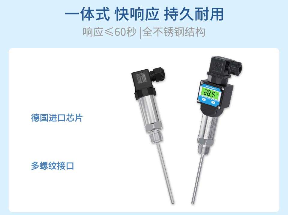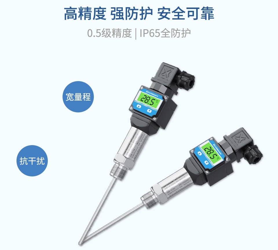 產(chǎn)品描述:本產(chǎn)品使用高穩(wěn)定性的電路進(jìn)行信號處理,實現(xiàn)溫度連續(xù)測量和輸出,采用高精度24位ADC轉(zhuǎn)換為數(shù)字信號,同時可以實現(xiàn)顯示、遠(yuǎn)傳等功能。廣泛應(yīng)用于石油、化工、電力、輕紡、環(huán)保等領(lǐng)域中對水或油的溫度測量。