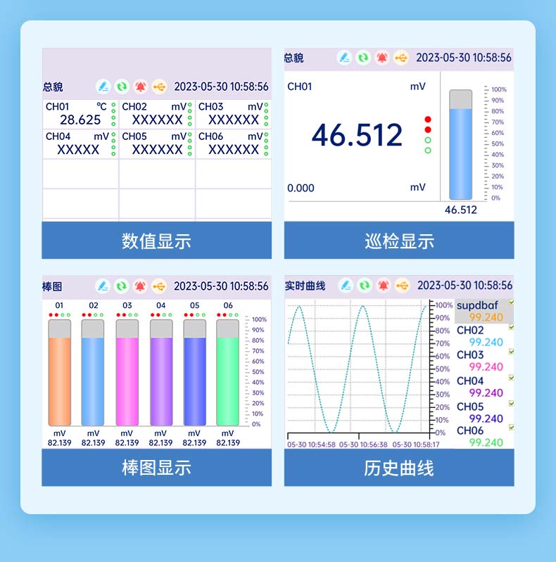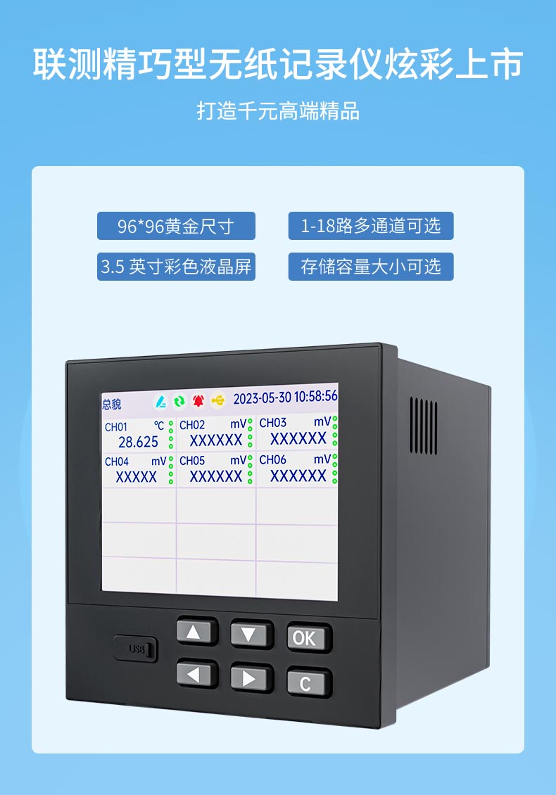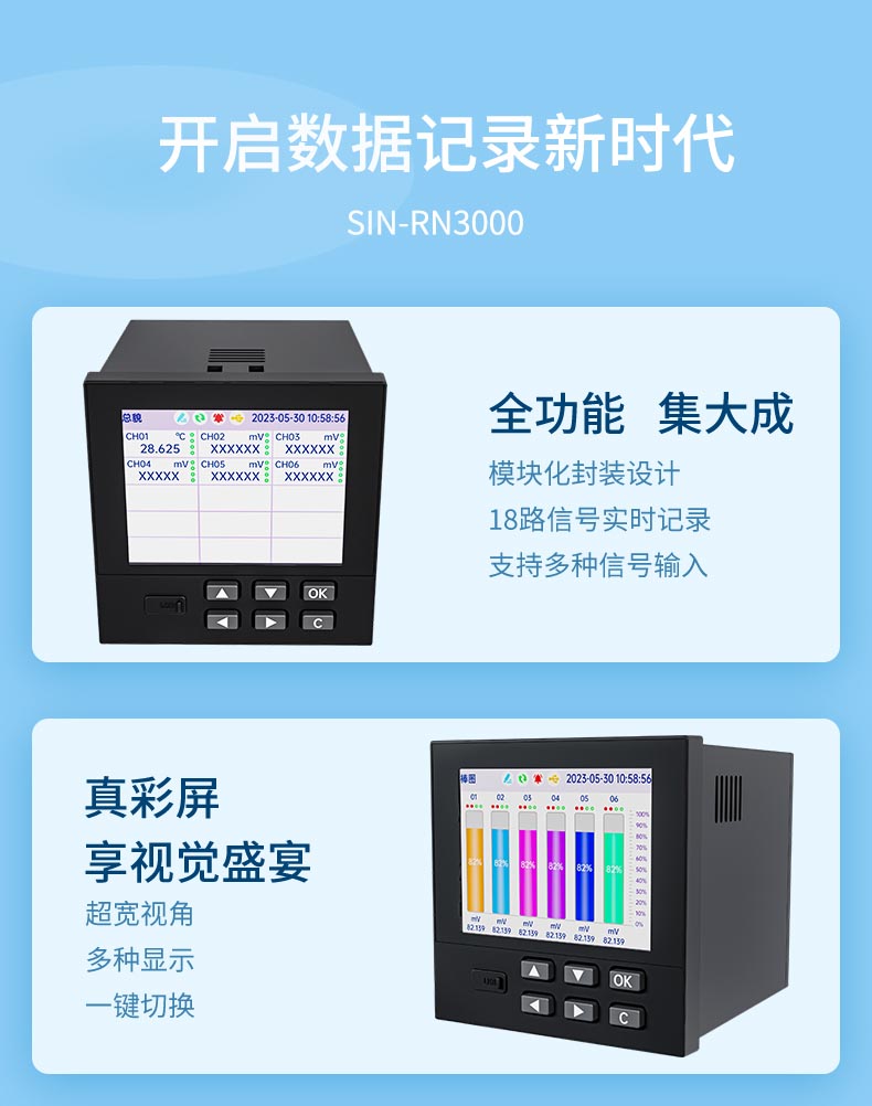 產(chǎn)品名稱:聯(lián)測(cè)_SIN-RN3000-1_18 路萬(wàn)能模擬輸入 3.5 英寸彩色液晶屏無(wú)紙記錄儀_溫度_壓力_多種參數(shù)