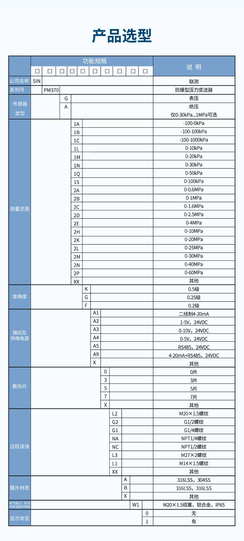 產(chǎn)品名稱:SIN-PM370防爆型壓力變送器/隔爆型/-100kPa-60MPa