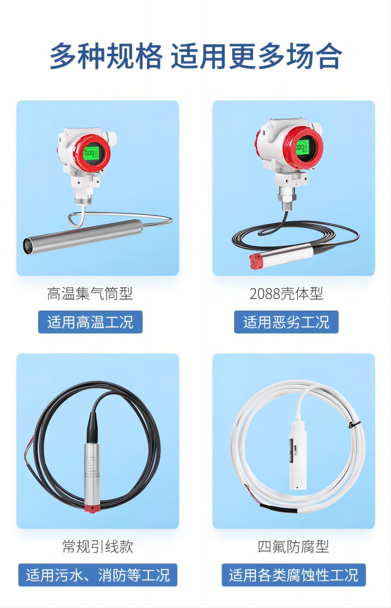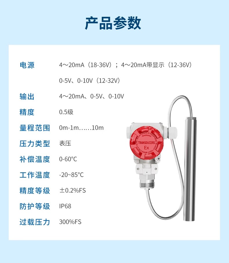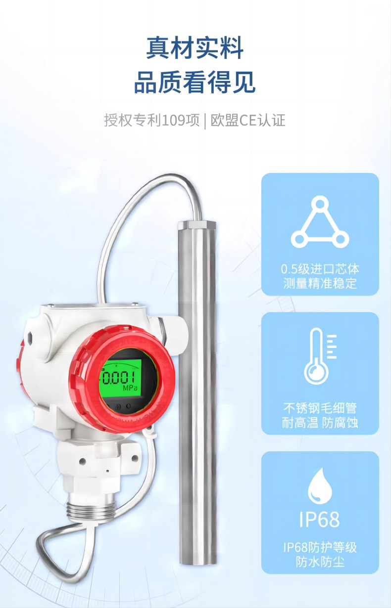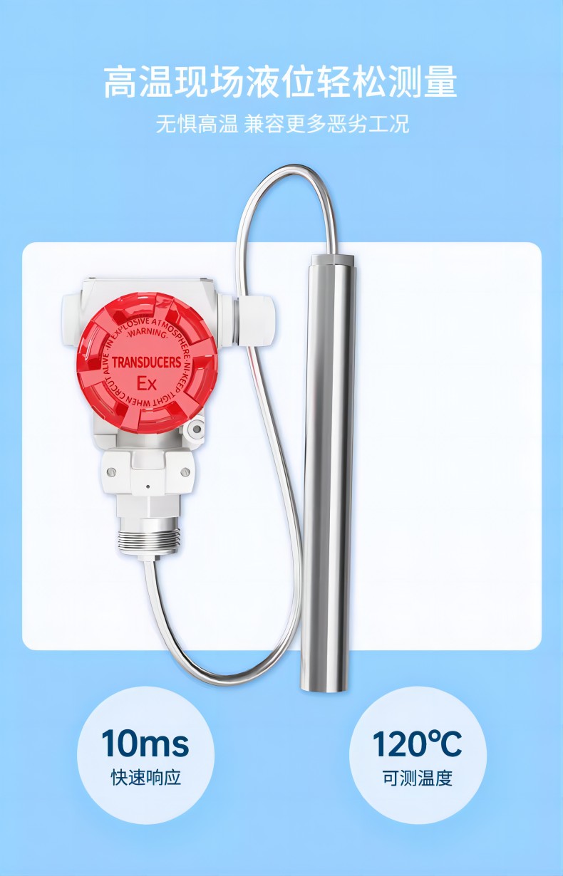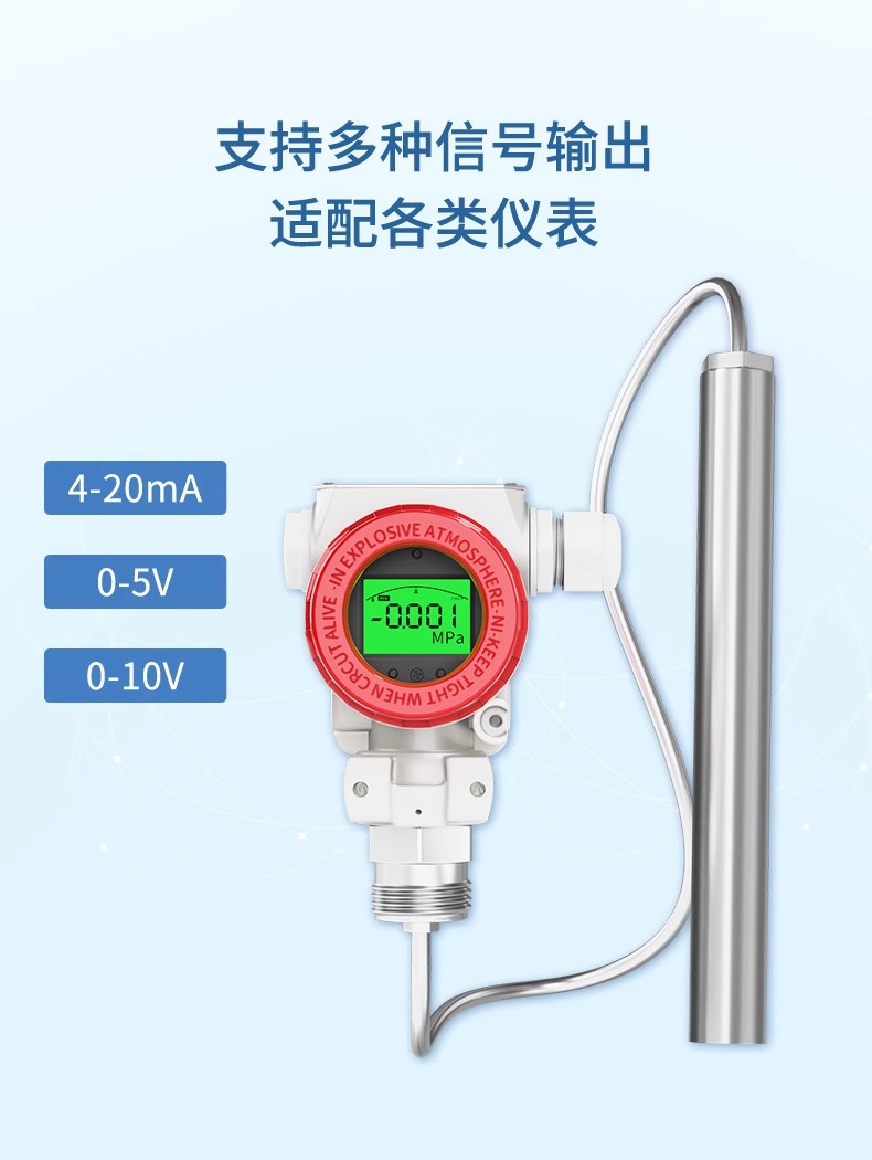 產(chǎn)品描述:集氣桶式液位變送器(下稱變送器)用于測(cè)量較高溫度液體介質(zhì)的液位,原理是被測(cè)液體介質(zhì)壓縮集氣桶內(nèi)的空氣,空氣壓力通過(guò)毛細(xì)管傳遞給敏感元件,敏感元件本身不與被測(cè)介質(zhì)直接接觸,因此變送器可以應(yīng)用在較高溫度的介質(zhì)環(huán)境中,同時(shí),內(nèi)置微型信號(hào)放大處理電路,可以直接與計(jì)算機(jī)接口卡、控制儀表、智能儀表或 PLC 等連接,進(jìn)行遠(yuǎn)程傳輸。變送器廣泛應(yīng)用于環(huán)保、水利、供水、工業(yè)過(guò)程控制、變頻供水等較高溫度介質(zhì)的液位測(cè)量。CN2