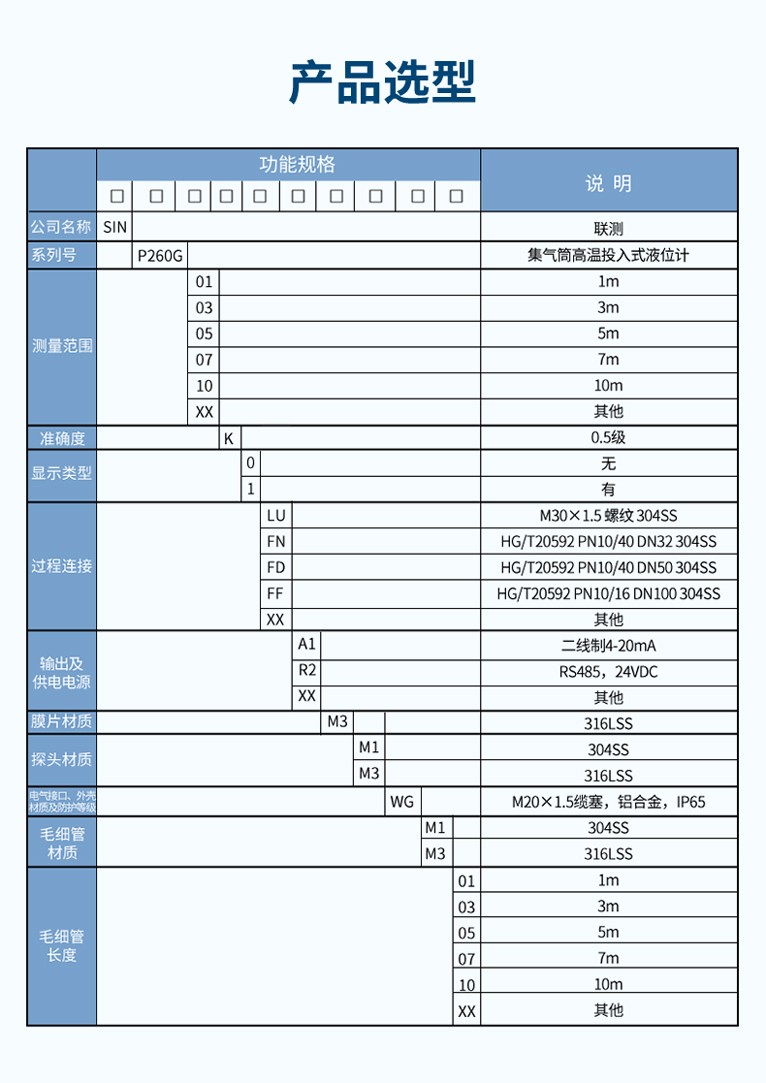 產(chǎn)品名稱(chēng):聯(lián)測(cè)SIN-P260G 高溫集氣筒投入式液位計(jì)/高溫介質(zhì)測(cè)量/耐震,抗射頻干擾
