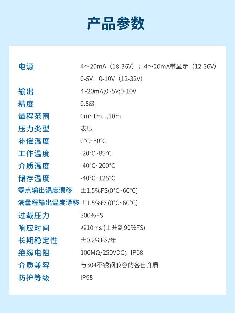 變送器廣泛應(yīng)用于環(huán)保、水利、供水、工業(yè)過(guò)程控制、變頻供水等較高溫度介質(zhì)的液位測(cè)量。咨詢熱線:400-185-1718">