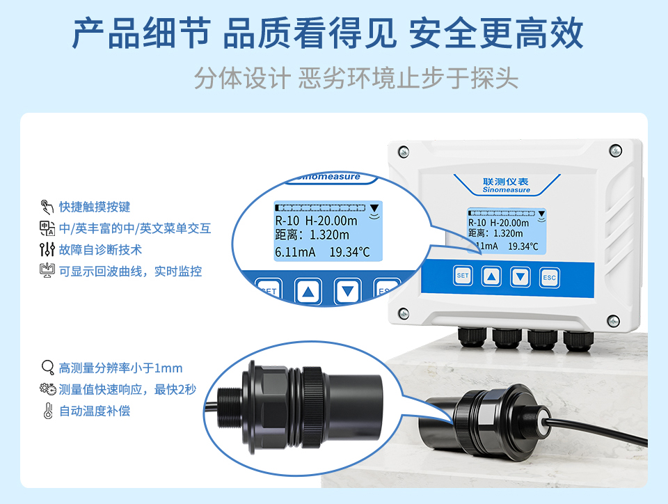 產(chǎn)品名稱:超聲波液位計(jì)(測(cè)量液位/物位),是一種非接觸式、高可靠性、高性價(jià)比、易安裝維護(hù)的液位/物位測(cè)量?jī)x器