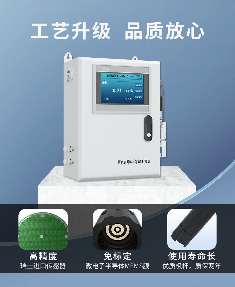 產(chǎn)品描述:本余氯儀內(nèi)置瑞士傳感器,具有測量精度高、響應時間快、維護 成本低等特點。余氯儀輸出一路(4~20)mA 標準信號和一路 RS485 信號,可連接各種調(diào)節(jié)器,如根據(jù)客戶需求可連接兩位調(diào)節(jié)器、時間 比例調(diào)節(jié)器、非線性調(diào)節(jié)器和經(jīng)典的 PID 調(diào)節(jié)器等,組合成各類余氯 控制系統(tǒng)。
